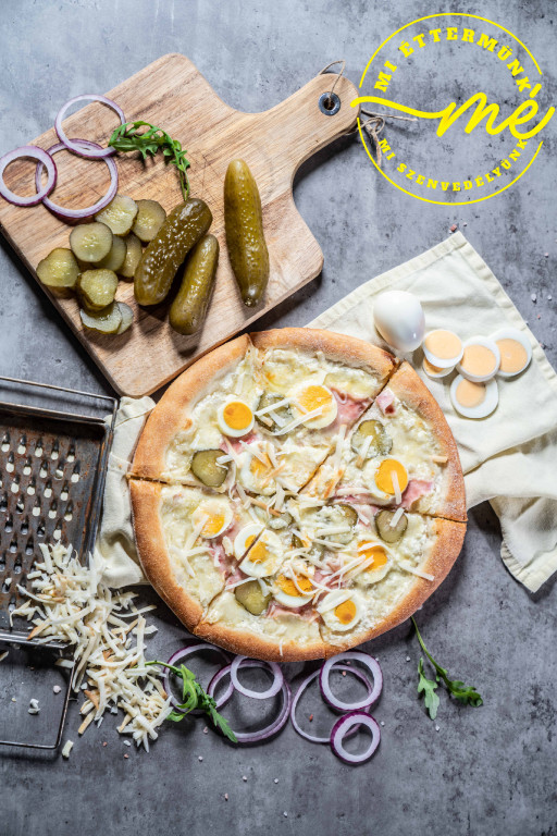 tejfölös alap, csemege uborka, füstölt sajt, mozzarella , sonka, tojás
