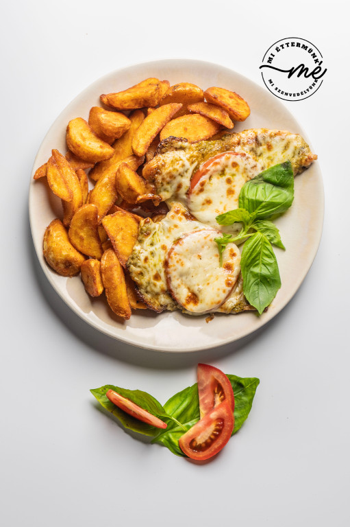 választható köret, bazsalikom, bazsalikom pesto, csirkemell , mozzarella , paradicsom